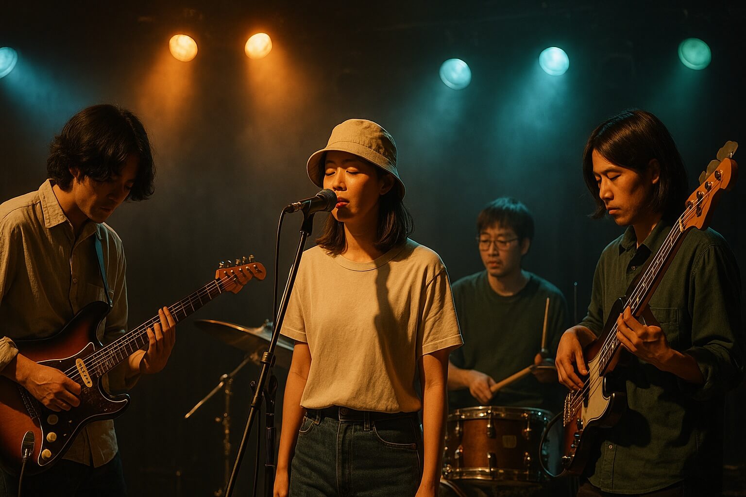 それぞれが担当楽器を持ちつつ、曲の構成やミックスにも深く関わっており、演奏者という枠を超えたクリエイティブ集団となっています。