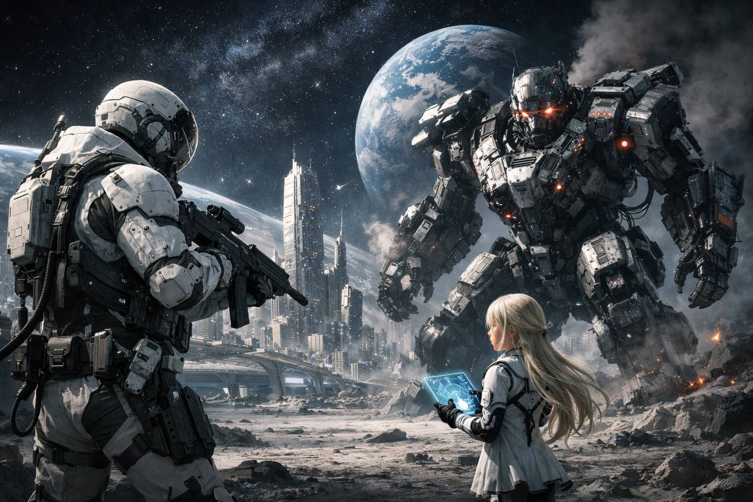 舞台は近未来の月面で、人工的に構築された都市が広がっています。